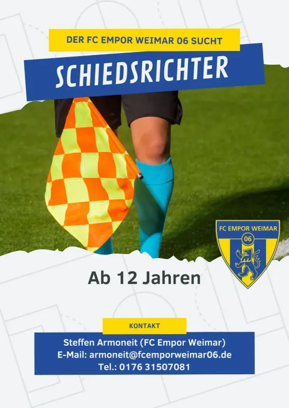 — 28.11.2025, Christian KemptnerDer Kreisschiedsrichterausschuss des KFA Mittelthüringen veranstaltet wieder einen Anwärterlehrgang für Schiedsrichter/innen in Präsenzform in der Landessportschule in Bad Blankenburg. Auch der FC Empor Weimar möchte ... [mehr]