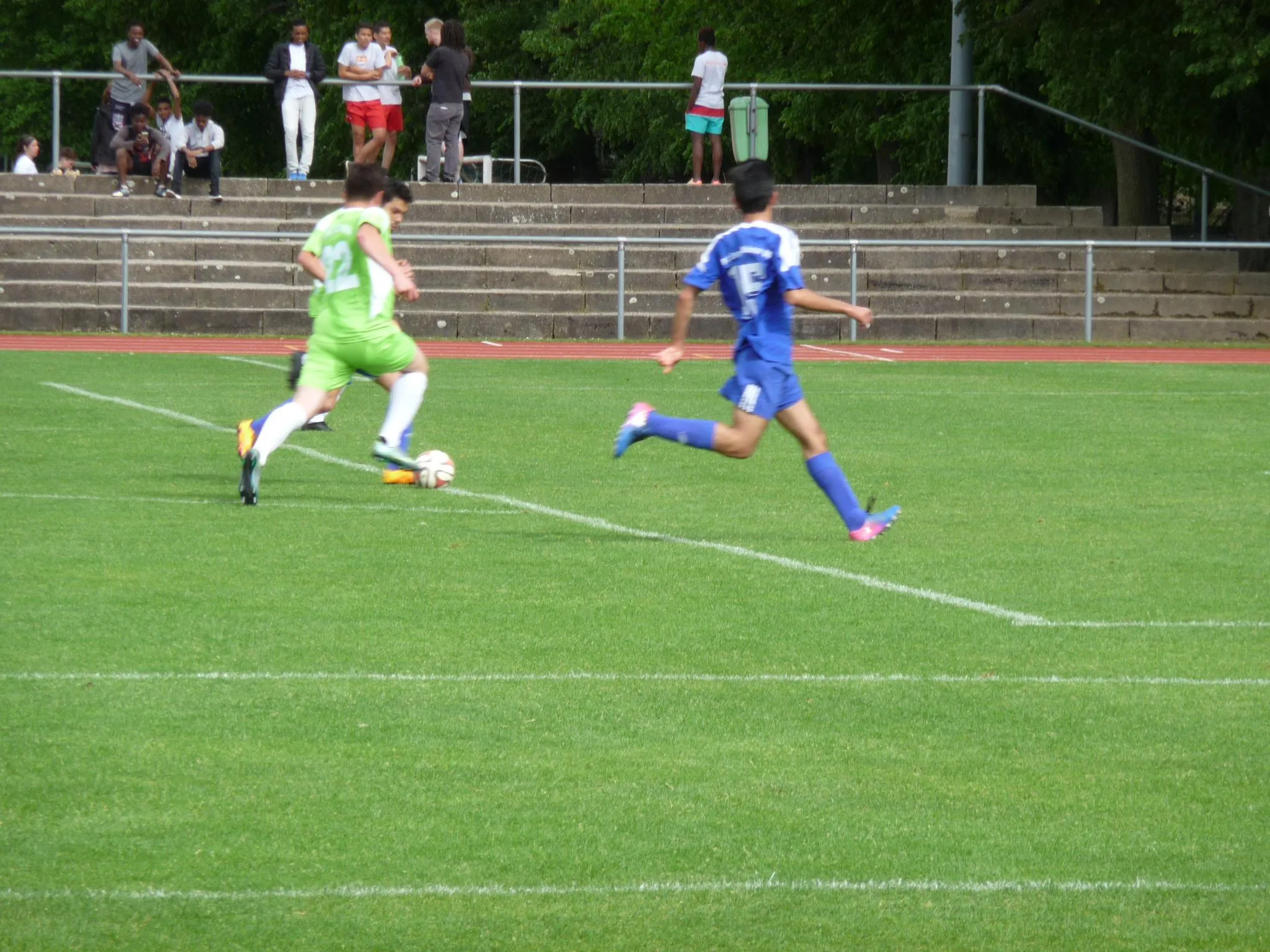 Dann die wahrscheinlich schönste Aktion des gesamten Spiels und ein Highlight des Tages. Unser Brasilianer GI wurde mit einem schönen Pass ins Zentrum auf die Reise Richtung Tor geschickt und was er dann mit dem Ball anstellte verblüffte nicht nur den gegnerischen Torwart, sondern auch die Zuschauer auf den Rängen. Leichtfüßig und mit ganz viel Gefühl im Fuß chippte er den Ball von der Strafraumgrenze über den hinauslaufenden Schlussmann der Gäste hinweg und es stand 1:2 (83. Spielminute). Dieses Tor sollte nochmal Schwung ins Empor-Spiel bringen und es entwickelte sich eine spannende Schlussphase, in der wir nochmal alles in die Waagschale werfen sollten, was wir hatten.