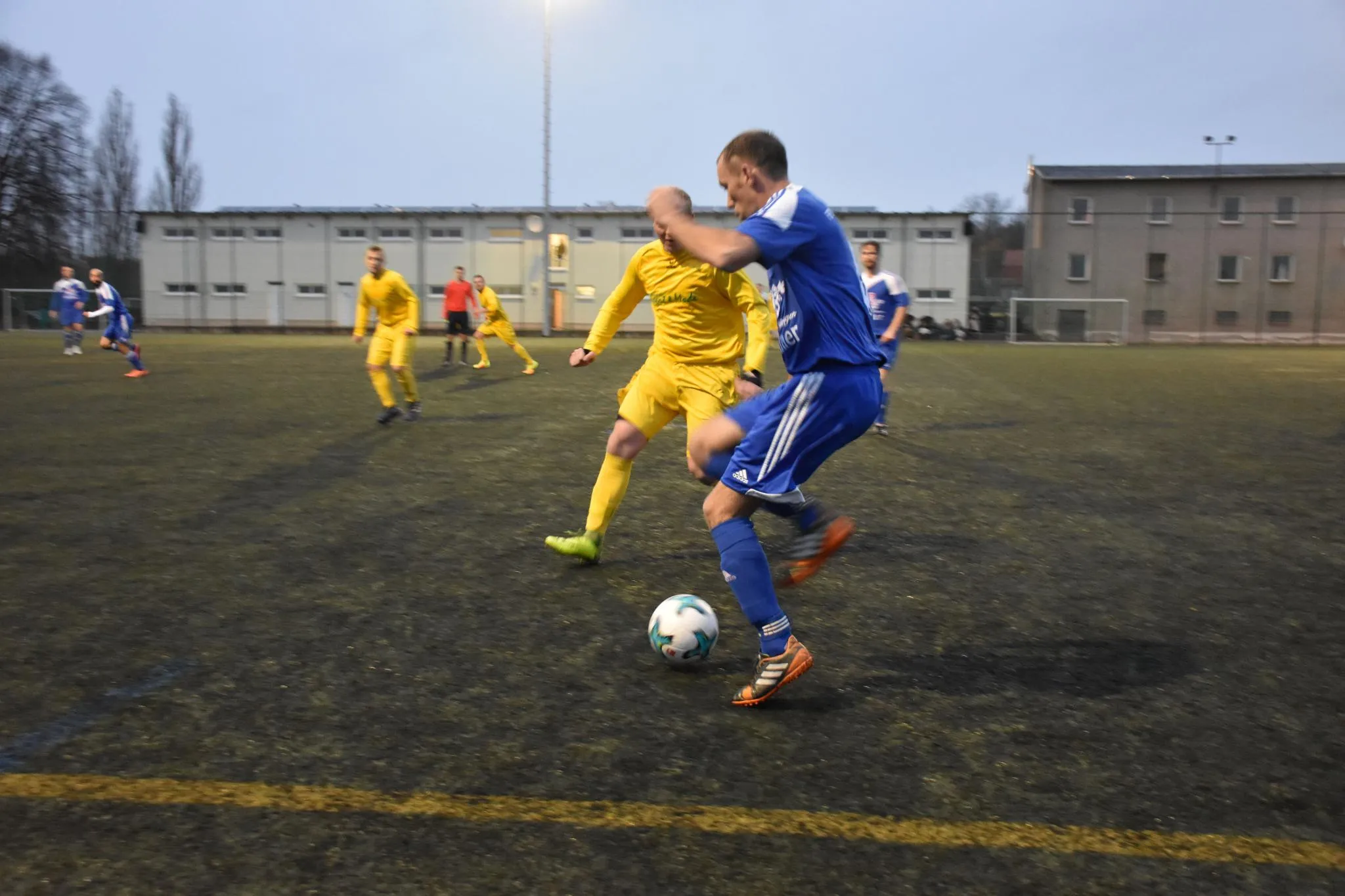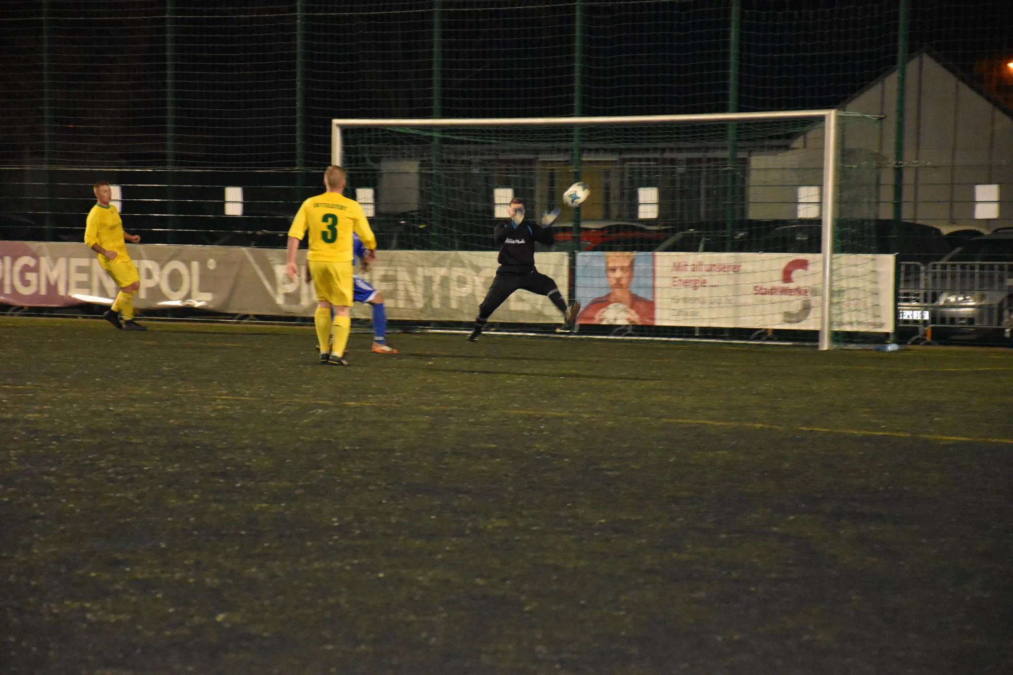 In der Defensive standen Alexander Mikuta mit seinen Außenverteidigern um Arno Backhaus, der sich immer wieder in die Offensive einschaltete, und Lukas Thiele sicher. Keeper Patrick Naumann strahlte Ruhe aus und versuchte das Spiel von hinten heraus zu ordnen. Bis zur Halbzeitpause kam unser Gegner eigentlich nur einmal richtig gefährlich vor unser Gehäuse und bei dieser Aktion machte sich Schlussmann Patrick Naumann lang und lenkte den Ball zur Seite weg.