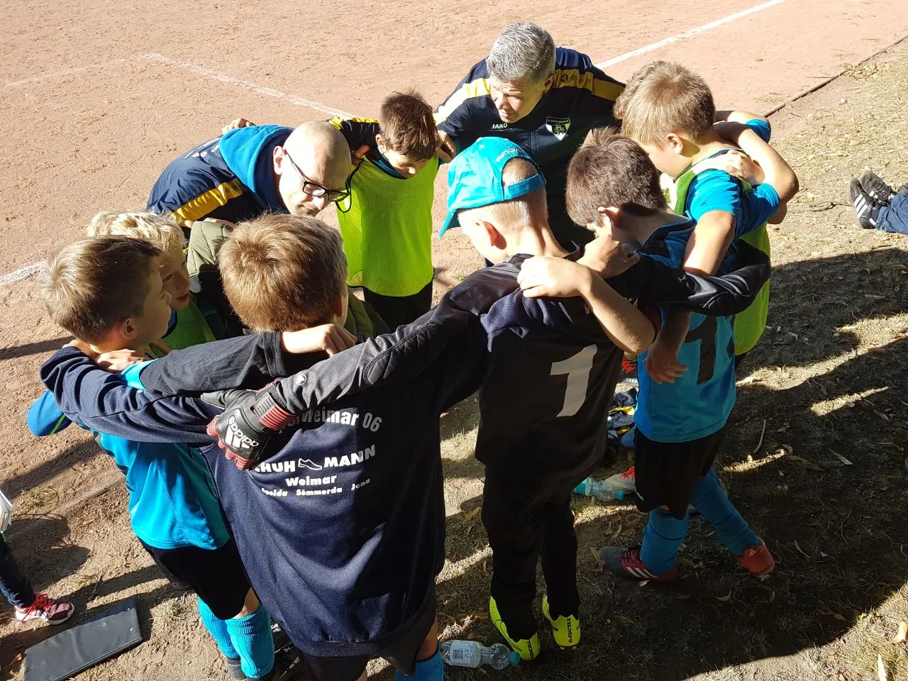 In der 2. Hälfte verfallen wir leider wieder in alte Muster. Zwar ist der unbedingte Wille und Kampfgeist unserer Jungs lobenswert. Allerdings wird dies nicht wie in der vergangenen Woche in ein gutes gemeinsames Spiel umgemünzt, sondern immer wieder wird im Alleingang versucht, vor das gegnerische Tor zu gelangen. Viele Ballverluste sind die Folge und die Bad Berkaer haben nun die Chance, ihr druckvolles Spiel aufzuziehen. Viel zu oft sind wir mit bloßer Verteidigungsarbeit beschäftigt. Kommt der Ball doch mal hinten raus, gelingt dies nur selten über unser in den letzten Wochen vielfach gezeigtes Passspiel. Viel zu oft ist nur der hohe Ball unser Mittel der Wahl und der findet vorn zu selten einen Abnehmer. Wenn doch wird entweder zu lange gebraucht, diesen richtig zu kontrollieren und der Gegenspieler ist bereits wieder da, oder es wird so ungenau abgeschlossen, dass der Ball weit am gegnerischen Tor vorbeigeht. Und so schafft es derGegner nach einem wilden Gestochere in unserem Strafraum, kurz vor Ende noch auf 0:3 zu erhöhen.