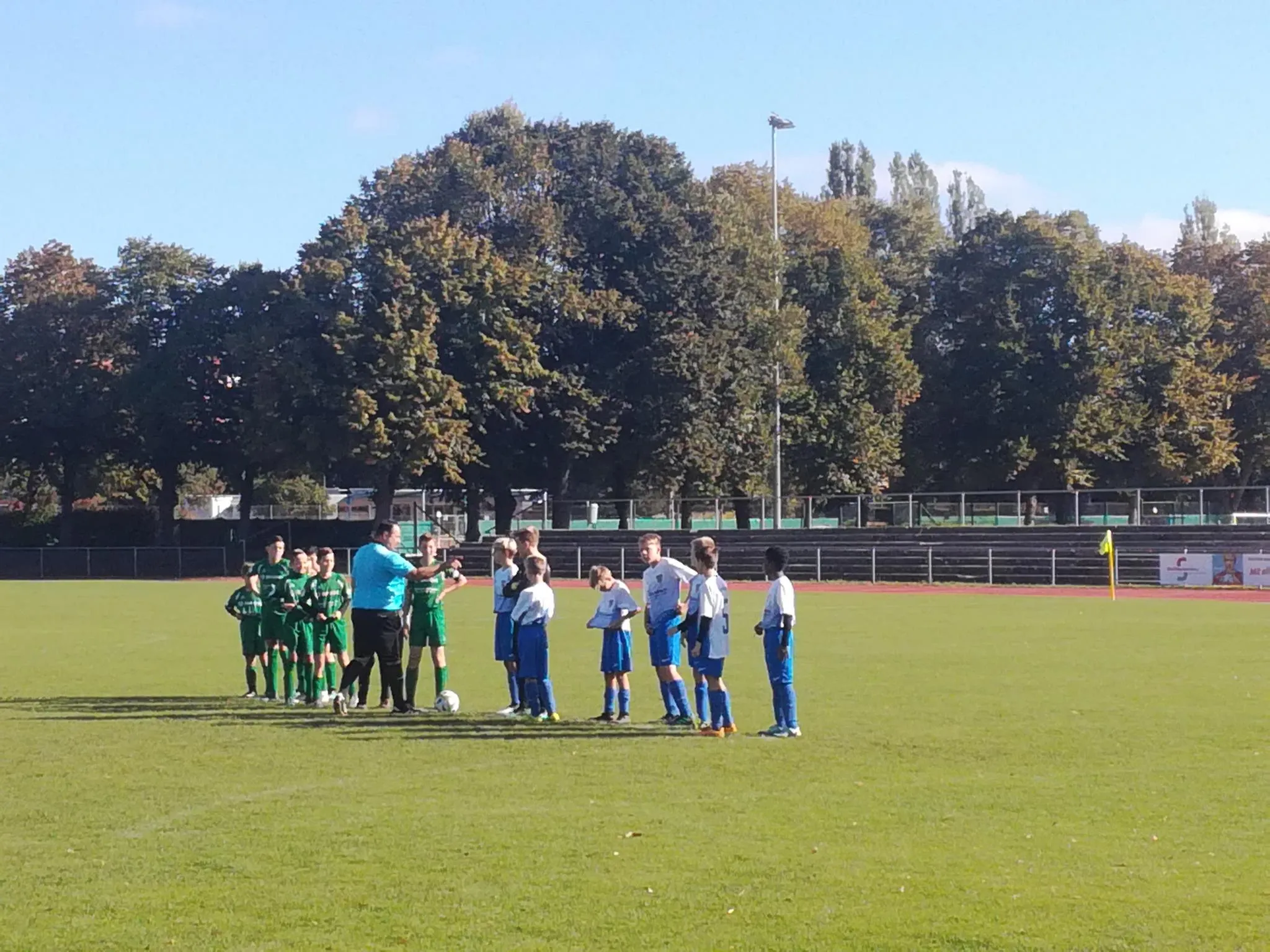 Trotzdem konnte man eine offensivstarke Mannschaft aufstellen die von Begin an keinen Zweifel daran ließ das Sie hier als Sieger vom Platz gehen wollten. Angetrieben von Mittelfeldmotor Anton wurden immerwieder Valentin und Lennox über die Flügel in Szene gesetzt. Diese versuchten dann unsere Spitze Aaron gefährlich anzuspielen. So spielte man sich in den ersten 20 Minuten immer wieder vor das Tor und ließ dem Gegner kaum Luft zum Atmen. Zusätlich konnte auch die Defensivreihe fast jeden Ball bereits in der gegnersichen Zone erobern. Nach einem Freistoß von Anton gab Aaron dem Ball dann nach knapp 15 Minuten die entscheidende Richtung und es stand verdient 1:0. Einen tollen Spielzug konnte kurze Zeit später erneut Aaron direkt zum 2:0 verwerten, nachdem vorher Valle unwiederstehlich auf der rechten Seite gleich zwei Gegenspieler auf sich nahm. In dieser Phase des Spiels gab es eine Reihe von teils toll herausgespielten Torchancen die leider nicht verwertet werden konnten. Dies lag zum Teil an uns selbst aber auch am starken gegnerischen Torwart. Kurz vor der Pause fasste sich dann Shawn ein Herz und zog aus 20 Metern mit einem Hammerschuss nach Ablage von Max ab. 3:0 ! Unhaltbar für den Torwart und hochverdient zu diesem Zeitpunkt.