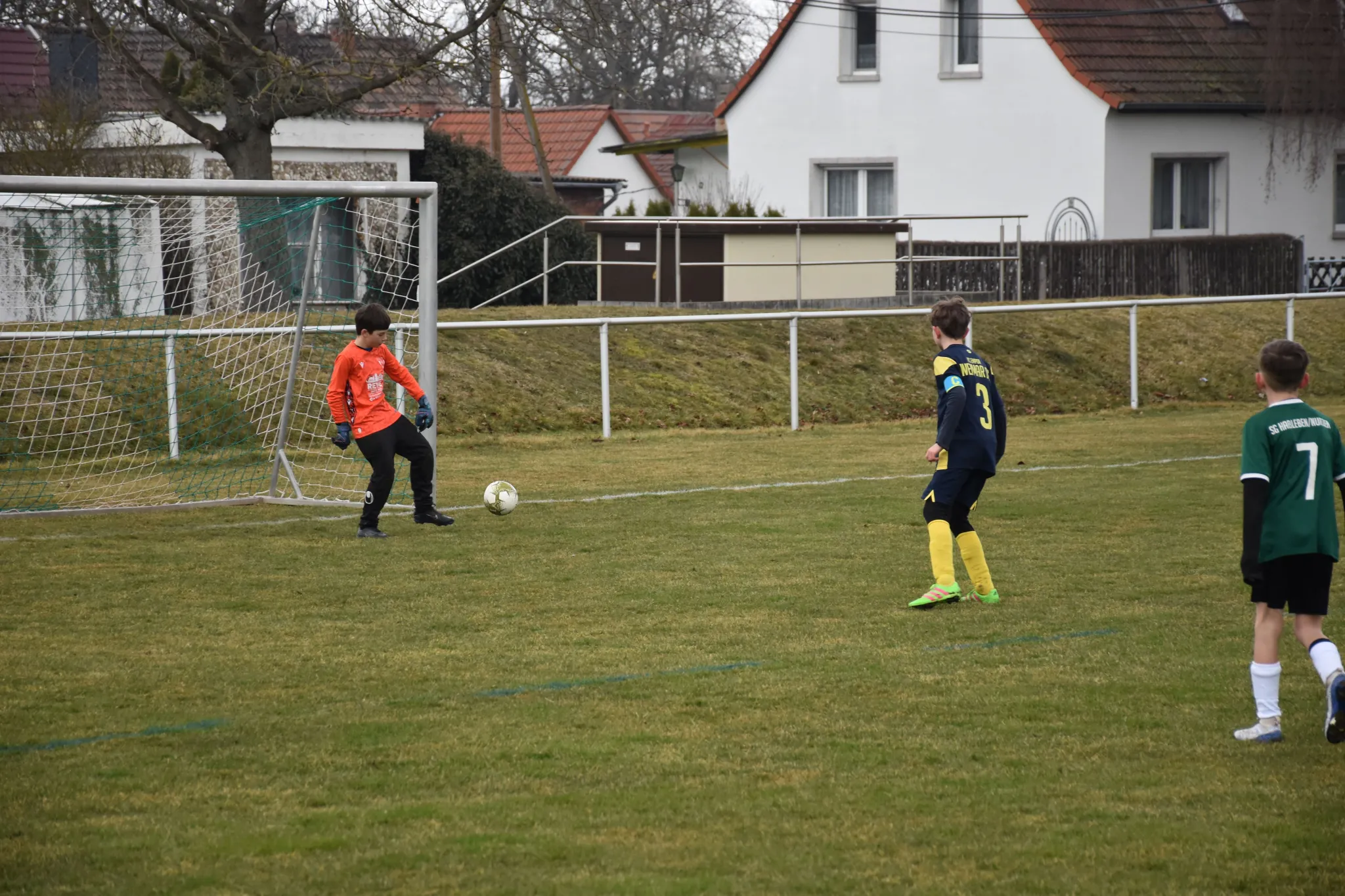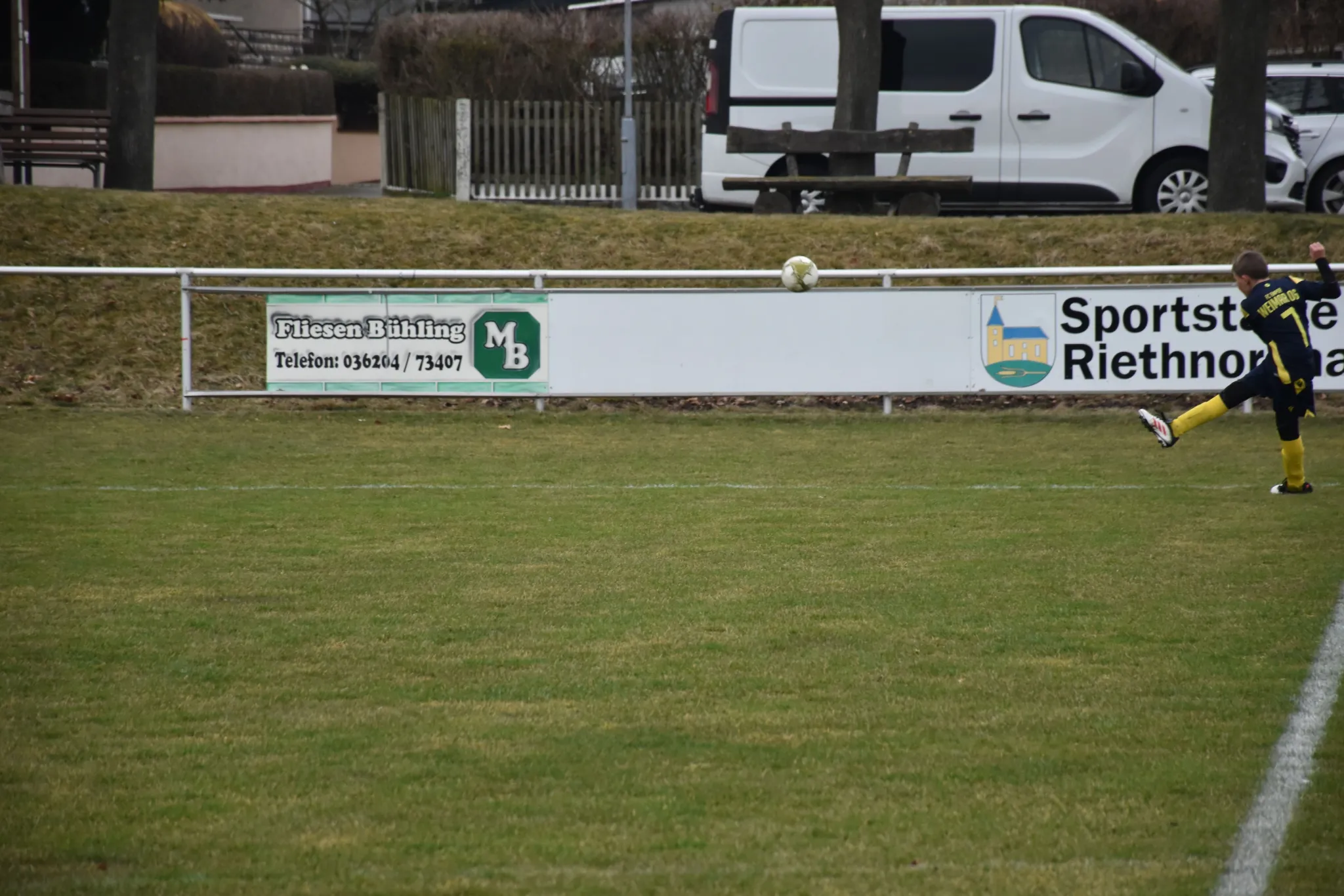 Im letzten Vorbereitungsspiel der Rückrundenvorbereitung führte uns unser Weg nach Riethnordhausen zur spielstarken Vertretung der SG SV Olympia Haßleben III (Kreis Erfurt-Sömmerda). Trotz der Wetterbedingungen konnte wir auf einem Rasenplatz spielen. Beide Teams zeigten in einer ansprechenden und ausgeglichenen Partie tolle Spielzüge. Die Begegnung blieb bis zur letzten Minute spannend und mit dem glücklicheren Ende sowie der vielleicht letzten Kraft konnten unsere Jungs das Spiel für sich entscheiden. Vielen Dank an die Gastgeber von Olympia Haßleben, dass wir bei Ihnen Gäste sein durften.