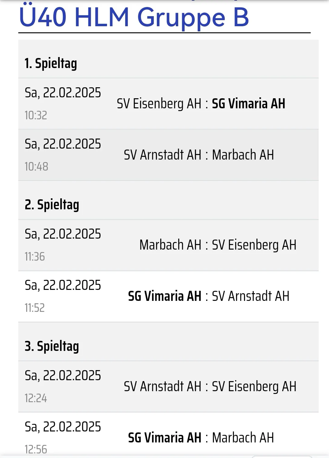 Gespielt wird ab 10 Uhr in der Dreifelderhalle in Weimar-West (Warschauer Str. 30). Unser Team bekommt es dann in der Gruppe B mit Arnstadt, Marbach und Eisenberg zu tun. In der Gruppe A spielen Oberweimar, Leimbach, Großschwabhausen und Gotha an den Start.