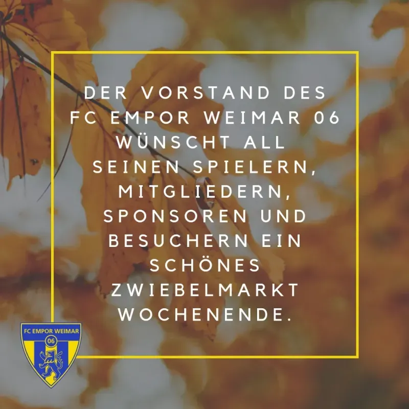 Der FC Empor Weimar 06 wünscht allen Spielern, Mitgliedern, Familien, Fans, Sponsoren und Besuchern des Weimarer Zwiebelmarktes ein schönes Zwiebelmarktwochenende.
