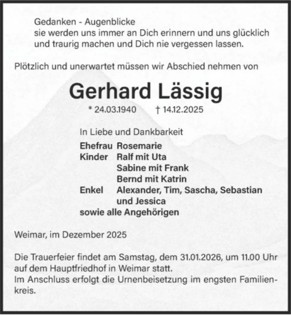 am 14.12.2025 plötzlich und unerwartet verstorben ist.