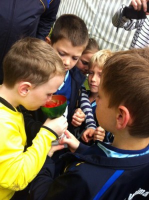 Leider waren die Kinder nach der Niederlage etwas traurig und es dauerte etwas bis wir Sie wieder aufgebaut hatten. Aber spätestens als der Pokal für den zweiten Platz in unseren Händen war und jeder ein Schlückchen Sekt (Brause) aus ihm trinken durfte waren alle wieder gut drauf.