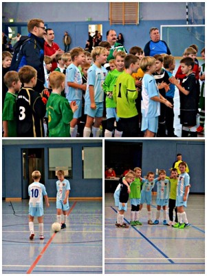 Damit hatten wir es heute auch mal mit Gegner zutun die in anderen Kreisligastaffeln spielten. Unsere Mannschaft war nach den ersten Hallentrainings richtig heiß auf das erste Hallenturnier und es war nicht einfach 9 Spieler aus so vielen tollen Fußballern auszuwählen. Wir hatten folgende Spieler dabei: Kevin, Anton A, Max, Konrad, Anton R, Cedric, Carlo, Luca, Shawn