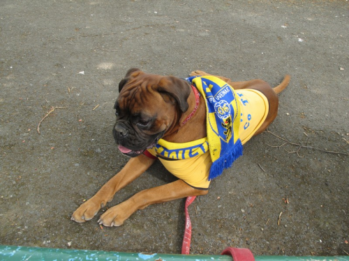 Links seht ihr übrigens den treuesten Fan und Maskottchen unserer Nach-wuchsmannschaften, Tyson. Der natürlich auch beim Pokalfinale alle vier Pfoten gedrückt hatte, wenn leider auch vergebens.