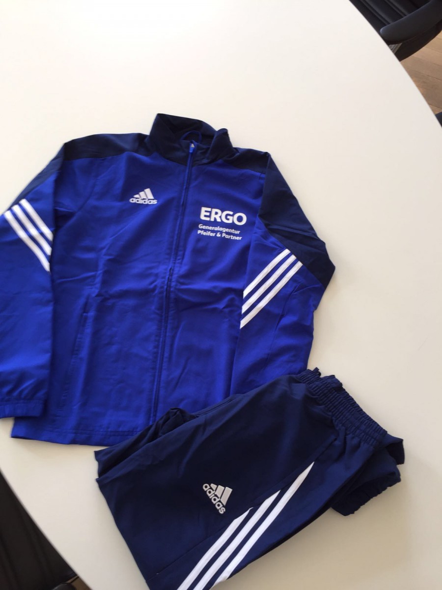 Dank ERGO Versicherung und dem 2. Männer Spieler Sebastian Pfeifer haben die Spieler der 1. und 2. Männer doch noch vor Saison Ende ihre heiß ersehnten Präsentationsanzüge bekommen.