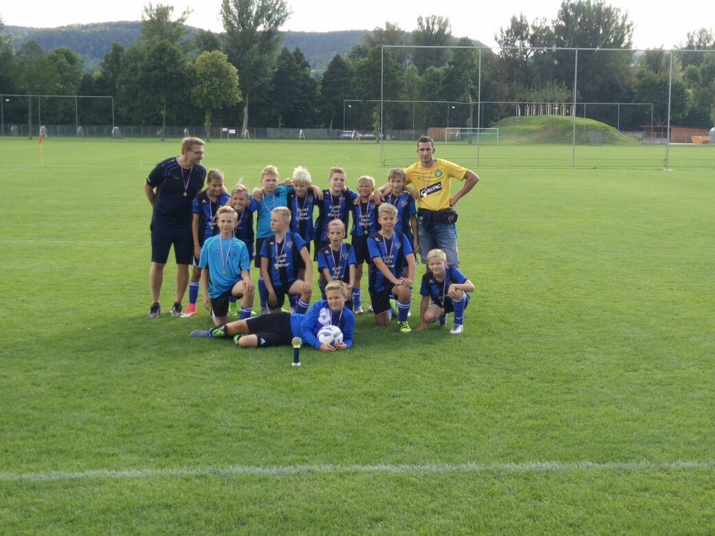 Insgesamt lieferten wir in allen Spielen eine angagierte geschlossene Mannschaftsleistung ab. Stärken zeigten wir besonders in der Abwehr und insbesondere unsere beiden Torhüter Luca und Gustav brachten große Sicherheit. Im Spiel nach Vorne zeigten wir gute Ansätze ohne jedoch zu überzeugen bzw zu zaubern. So konnten wir uns mit 3 Siegen und 2 Unentschieden und ohne ein Gegentor mit 11 Punkten den Turniersieg sichern. Das stärkste Spiel zeigten wir gegen den späteren Zweitplatzierten SV Schott Jena welches mit 2:0 an uns ging. Mit etwas Glück und guter Torwartleistung konnten wir das letzte entscheidende Spiel gegen das Team des SC 03 Weimar mit einer schönen Kombinaton von Paul , Cedric und Aaron im Abschluss mit 1:0 gewinnen.