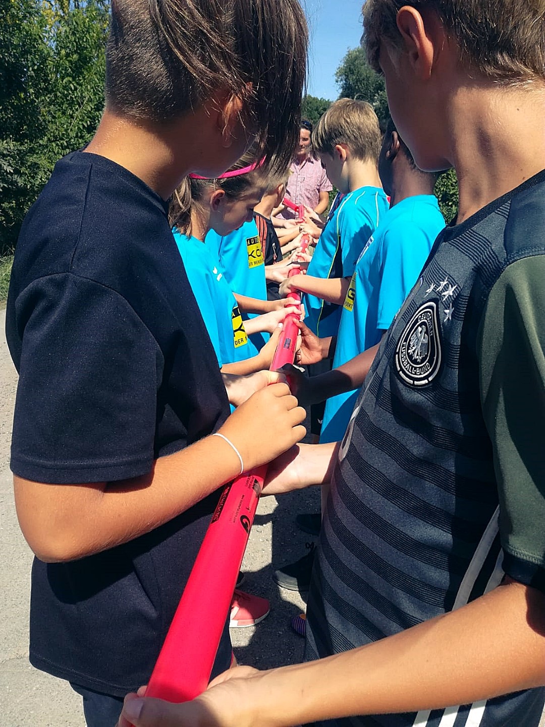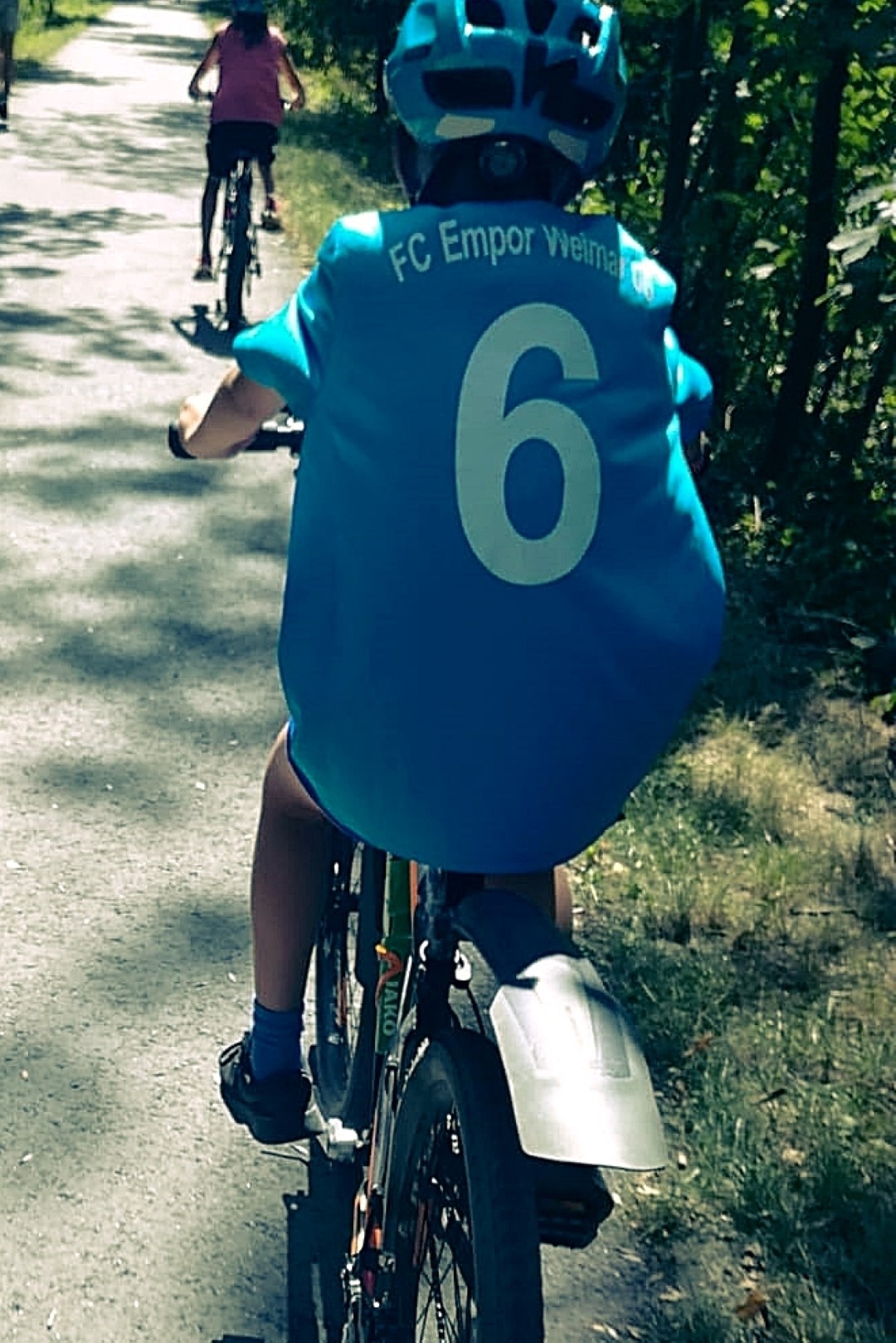 Nach einem tollen Obstfrühstück ging es dann aufs Fahrrad. In zwei Gruppen ging es ins Freibad nach Oßmannstedt. Aber wer dachte das es eine gemütliche Tour werden sollte, hatte sich geirrt. Auch hier setzte man auf den Trainingseffekt. Es gab zwei Gruppen. Das Team der "Bienen" startete zuerst und die "Hummeln" drei Minuten später. So gab es auch hier einen kleinen Wettbewerb den die "Hummeln" aufgrund eines technischen Defekts im Bienen-Team für sich entscheiden konnten. So schaffte man eine klasse Zeit von 31 Minuten von Weimar nach Oßmannstedt mit dem Rad. Respekt !