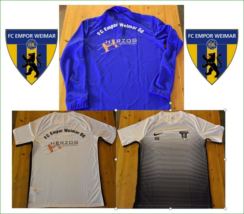 Kurz vor dem Anpfiff zum Spitzenspiel der Kreisliga-Nord, erhielt unsere 1. Männermannschaft, dank der Unterstützung der Firma Herzog Heizungs- und Anlagenbau aus Weimar, einen neuen Satz Aufwärmshirts und Trainingstops.