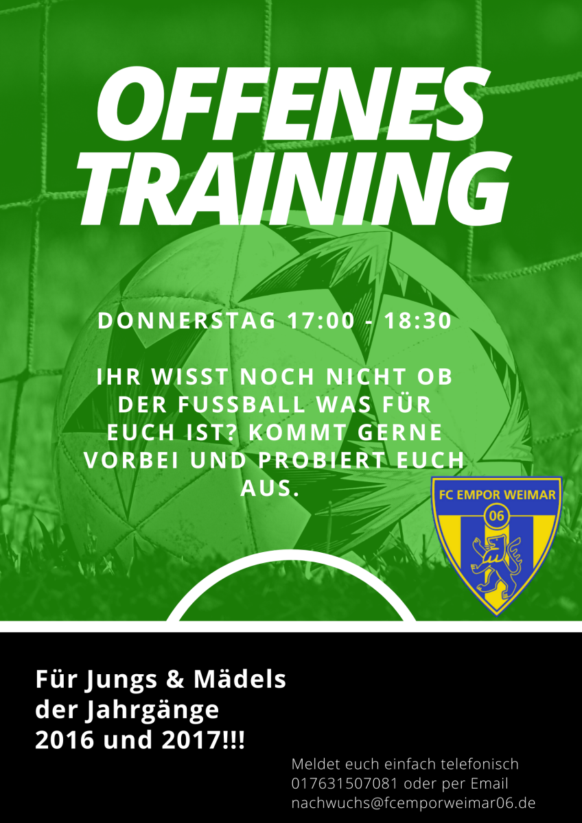 Für unsere kleinsten Emporianer bieten wir ab sofort wieder ein öffentliches Training an. Da ein Jahrgang rausgewachsen ist, seid nun ihr gefragt! Ihr seit 2016/2017 geboren, wisst aber noch nicht ob der Fussball was für euch ist? Bei unserem G-Junioren Trainer und Jugendkoordinator Steffen Armoneit werdet ihr es schnell herausfinden. Kommt also gern immer donnerstags ab 17:00 Uhr vorbei und probiert euch aus.