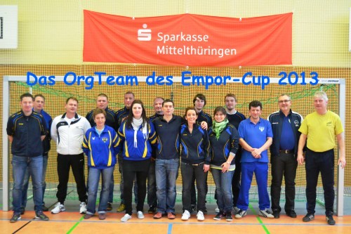 Der Empor-Cup 2013 ist beendet und es ist Zeit ein kleines Resümee zu ziehen. Wir können mit Fug und Recht behaupten das unser, mittlerweile weit über die Stadtgrenzen hinaus bekannte, Empor-Cup wieder ein voller Erfolg war. Schon im Vorfeld war der Ansturm immens, gab es doch für die 35 freien Startplätze über 150 Anmeldungen. Natürlich konnten wir dadurch nicht alle Vereine berücksichtigen, konnten aber so Mannschaften aus allen Regionen Thüringens einladen. Aber auch das ganze Drum und Dran mit einer erstklassigen Versorgung, mit vielen Leckereien, wie z. B. selbstgebackener Kuchen oder selbstgemachter Salat (vielen Dank hier an die Eltern) oder den Pizzabrötchen von "Hallo Pizza", sowie der Gulaschsuppe von "kostbar" war ein riesiger Erfolg. Und die Tombola, bei der es keine Nieten gab, war insbesondere am Samstag der Renner.
