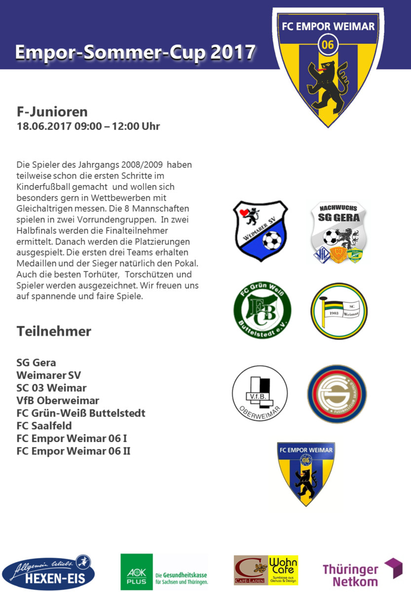 | 2. FC Empor Weimar 06 1. | 3 : 0 | 2 : 0 | 2 : 0 | 0 : 0 | 4 : 0 | 3 : 0 | 14:0 16 |