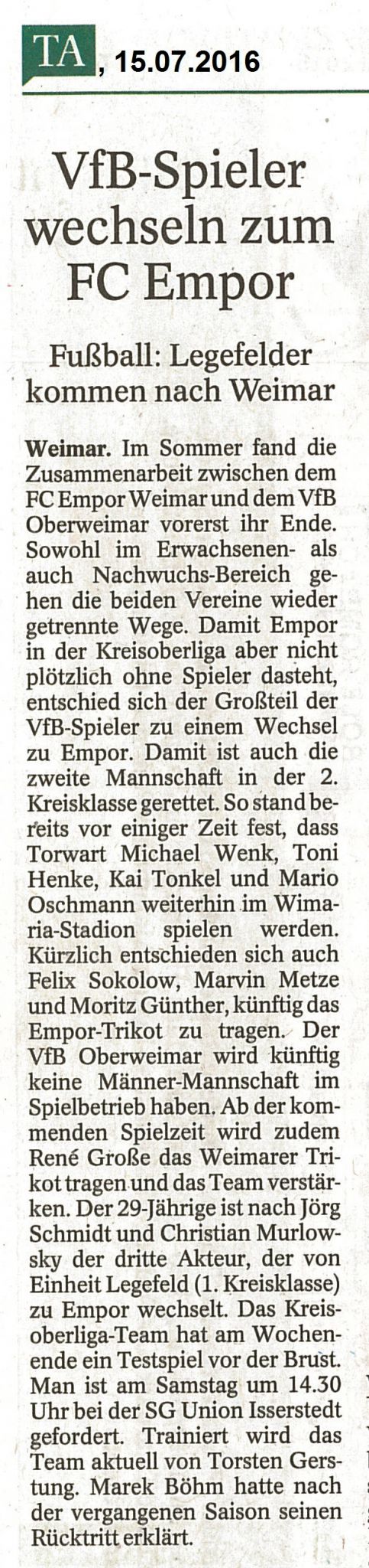 | 15.07.2016 | TA | Verein | Spielerwechsel | Bericht | |