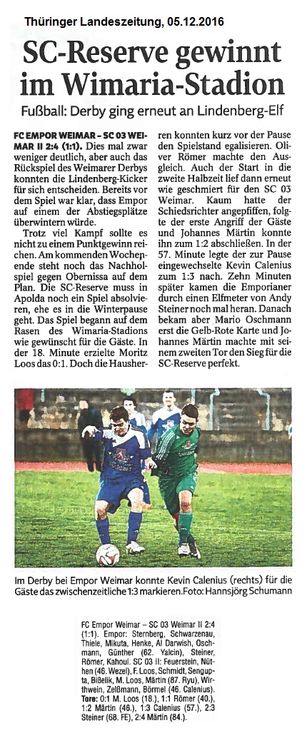 | 05.12.2016 | TLZ | 1. Männer | SC 03 Weimar 2. | 2:4/H | Spielbericht |