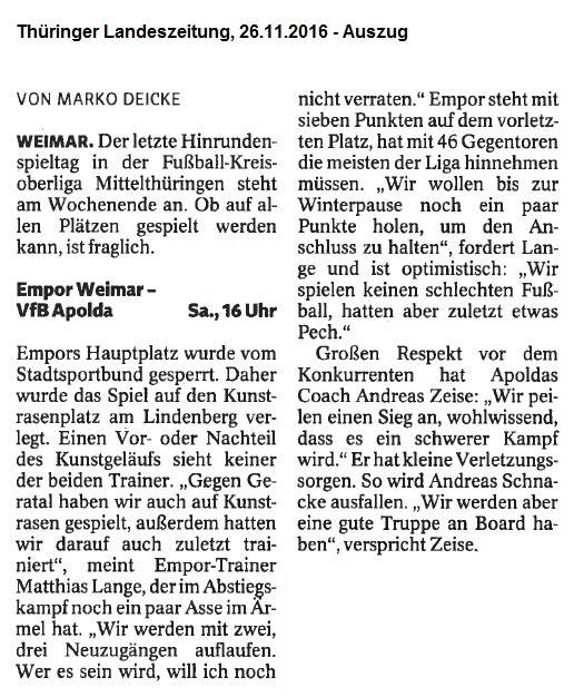 TLZ | 1. Männer | VfB Apolda | 2:3/H |