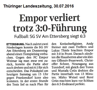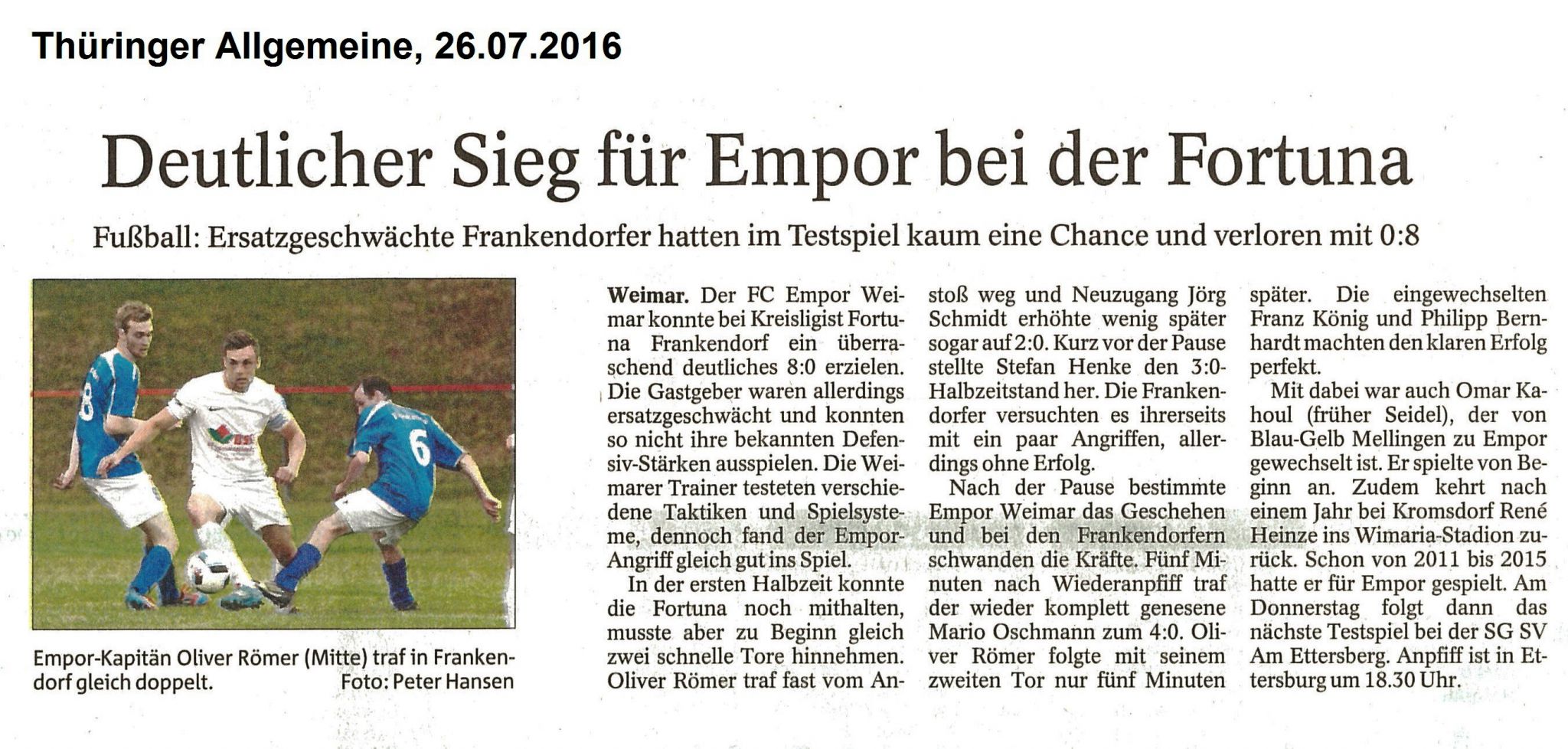 | 26.07.2016 | TA | 1. Männer | SV Fortuna Frankendorf (FS) | 0:8/A | Spielbericht |
