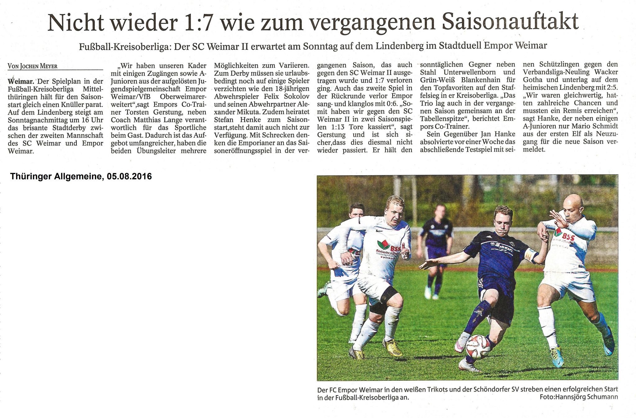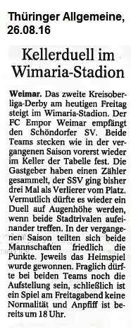 | 26.08.2016 | TA | 1. Männer | Schöndorfer SV 1949 | Vorschau | |