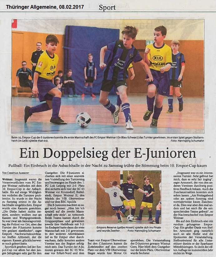 | 08.02.2017 | TA | Nachwuchs | 10. Empor-Cup | Turnierbericht | |