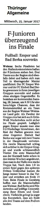 | 14.01.2017 | TLZ | Nachwuchs | 10. Empor-Cup | Vorschau | |